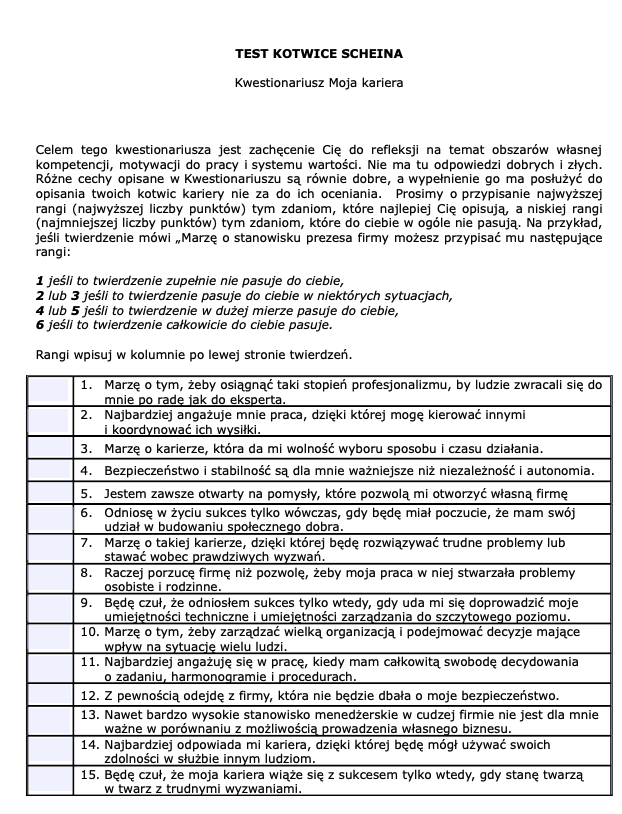 Mam uprawnienia do stosowania narzędzia do pomiaru zainteresowań zawodowych: